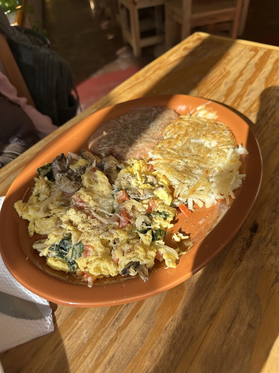 Why 3 Five Stars but 4 Stars overall? Coffee. Mine was excellent. Deb had none since she drinks decaf due to health reasons. Everything else was really very good with a presentation and preparation just unique enough to be noticed and more than good enough to be remembered. Deb had a scrambled veggie omelette and a pancake. I had huevos rancheros with green. Both dishes came with hash browns and refried beans. The hash browns were very good - not the least bit greasy but nicely browned and crispy. Eggs were cooked to order and the chili was excellent. Their menu is extensive so I’m looking forward to a return visit.